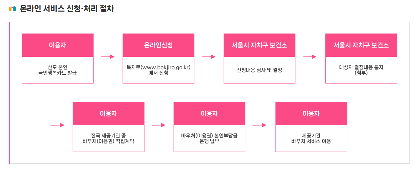 - 방문 신청: 주소지 보건소 → 신분증, 출산증빙서류 지참 후 신청