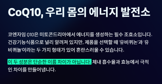 - 단점: 체내에서 유비퀴놀로의 전환 과정이 필요하며, 나이가 들수록 이 전환 능력이 현저히 감소합니다.