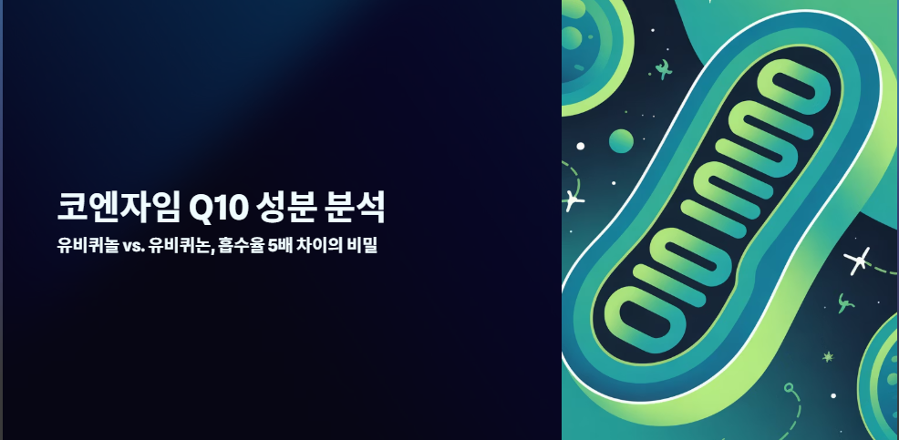 코엔자임 Q10은 단순한 보충이 아니라, **'어떤 형태'**로 보충하느냐에 따라 효능 체감이 크게 달라지는 영양소입니다. 특히 체내 합성 능력이 떨어지는 40대 이후에는 이 성분의 차이를 아는 것이 매우 중요합니다.