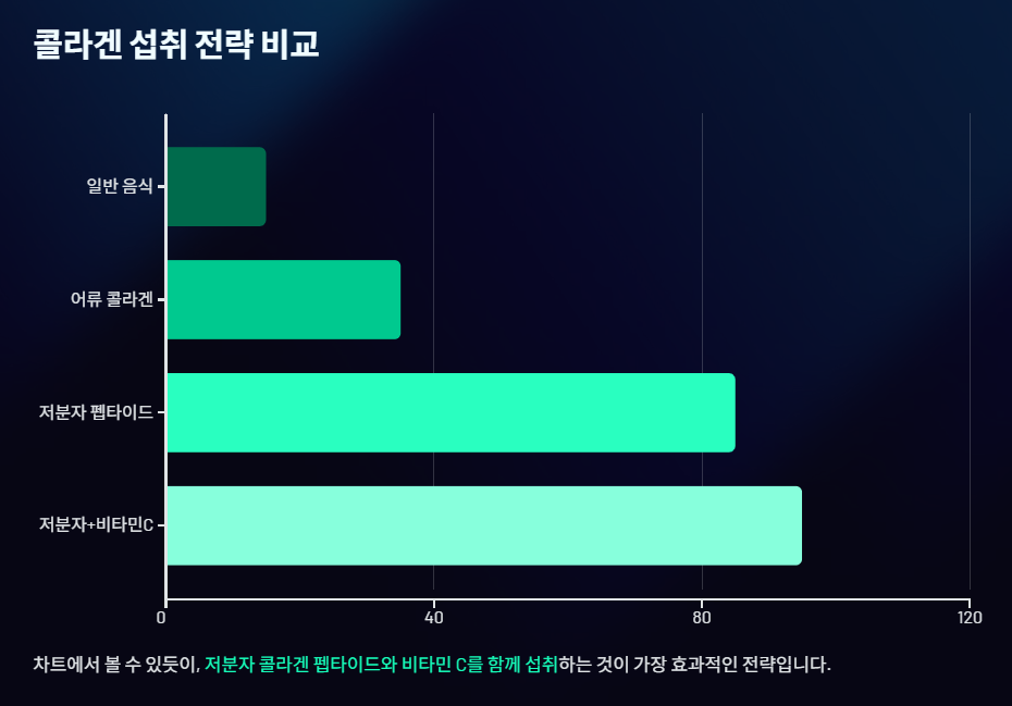 💡 Tip: 콜라겐의 효능을 기대한다면, 분자 크기를 500 Da(달톤) 이하로 줄인 '저분자 콜라겐 펩타이드' 형태의 건강기능식품을 섭취하는 것이 흡수율 면에서 훨씬 유리합니다.
