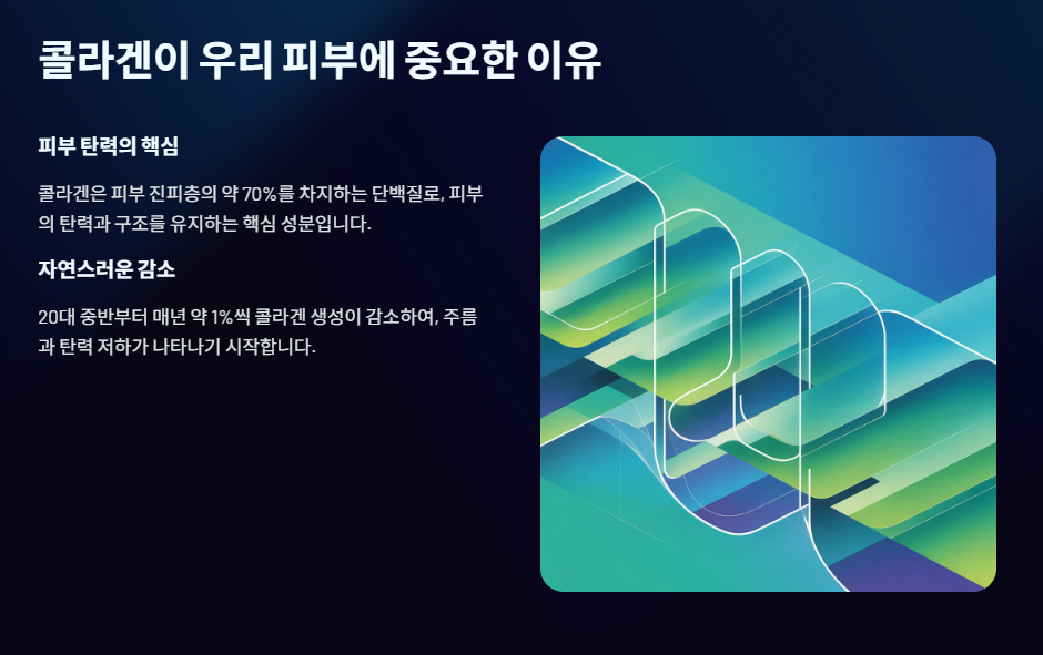 콜라겐이 함유된 화장품은 가장 접근하기 쉬운 방법이지만, 흡수율 면에서는 한계가 명확합니다.
