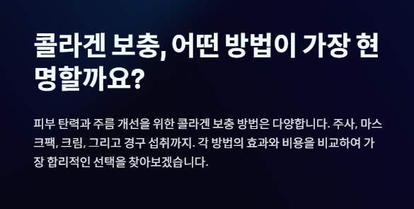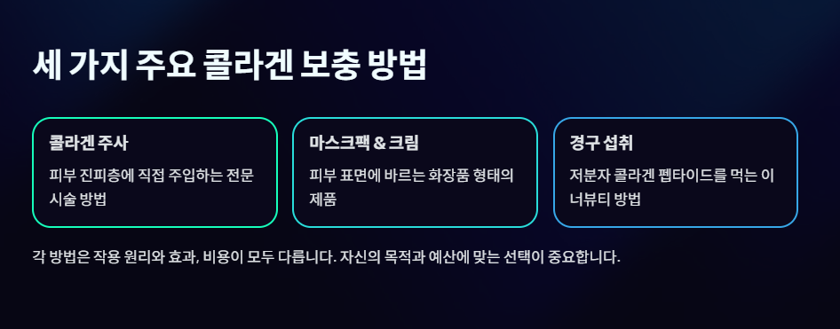 콜라겐 주사, 마스크팩, 크림 세 가지 방법의 장단점과 가성비를 분석해 드립니다.