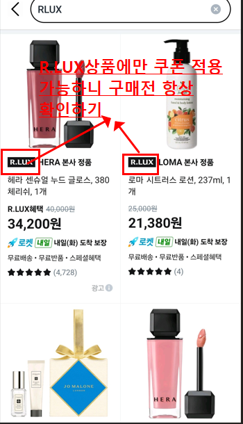알럭스(RLUX) 쿠폰 사용방법