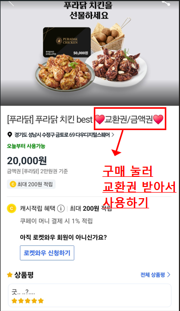 5. 치킨·피자 등 일반 기프트콘 구매 후 쿠폰 적용