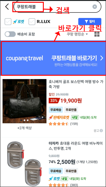 2. 검색창에 쿠팡트래블 입력