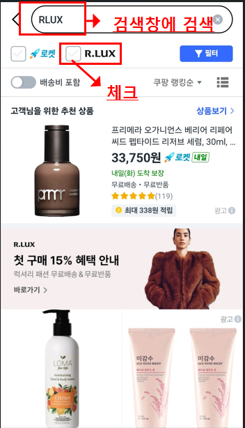 알럭스(RLUX) 쿠폰 사용방법