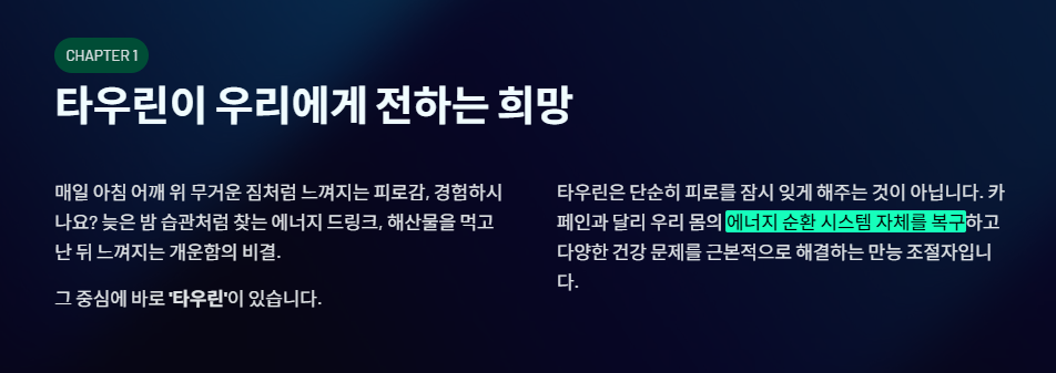 매일 아침 눈을 뜰 때마다 어깨 위에 무거운 짐을 올려놓은 듯한 느낌, 혹시 경험하고 계신가요? 늦은 밤까지 일하거나 공부할 때 습관처럼 찾게 되는 에너지 드링크, 또는 싱싱한 해산물을 먹고 난 다음 날 느껴지는 왠지 모를 개운함의 비결! 그 중심에 언제나 '타우린'이라는 이름이 있습니다.