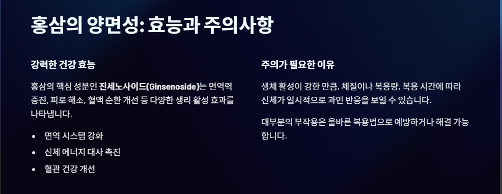 대부분의 홍삼 부작용은 '홍삼이 몸에 맞지 않는다'기보다는, 홍삼의 강한 활성 성분에 대한 신체의 일시적인 반응이거나 잘못된 복용 시간 때문에 발생합니다.
