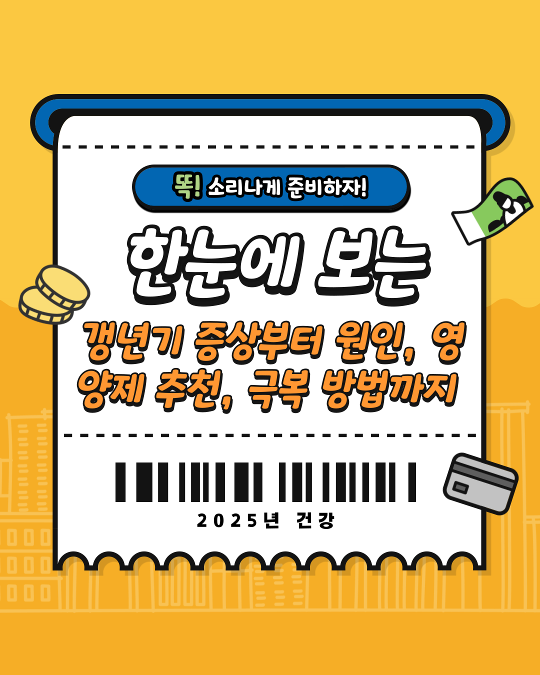 오늘은 갱년기 증상부터 원인, 영양제 추천, 극복 방법까지 한 번에 정리해드립니다.