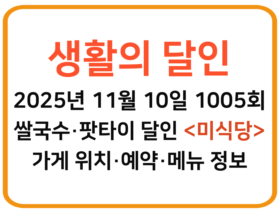 2025.11.10 - [생활정보] - 🍜 생활의 달인 1005회 쌀국수·팟타이 달인 <미식당> 가게 위치·예약·메뉴 정보