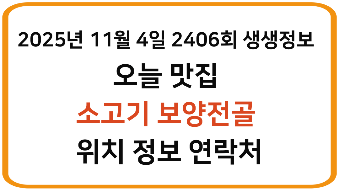 | 6시내고향 2025년 11월 4일 8401회 오늘 맛집 안동 옥정동 불고기 위치 정보 연락처 택배 밀키트 정보 (0) | 2025.11.04 |