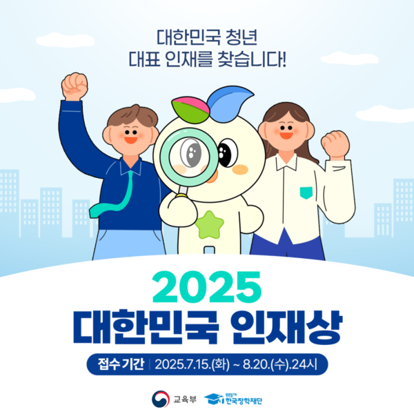 대한민국 인재상은 교육부와 한국장학재단이 공동 주관하는 장학 및 시상 제도로, 청년 우수 인재를 발굴하여 대한민국의 미래를 이끈다는 목적을 지닙니다. 2025년에는 총 100명을 선발하며, 고등학생·청소년 부문 40명 내외, 대학생·청년 일반 부문 60명 내외로 나눠 시상합니다. 시상 내역은 국무총리상 1명 및 부총리 겸 교육부 장관상이며, 상금도 수여됩니다.