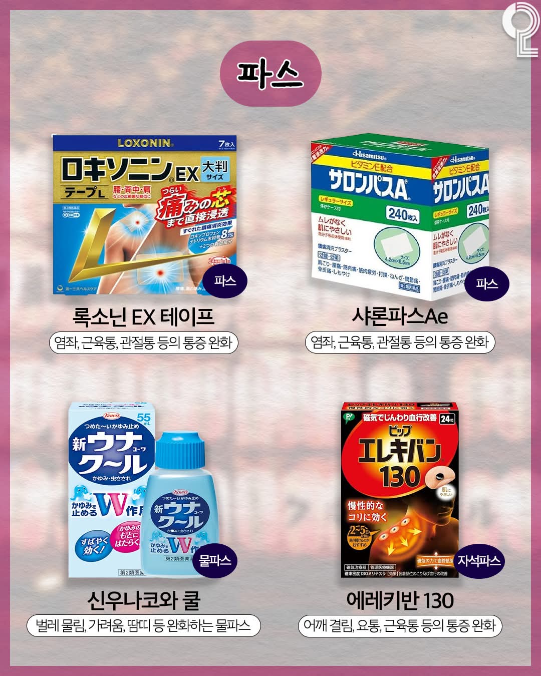 3. 🩹 파스 및 외용제 (통증 및 피로 회복)