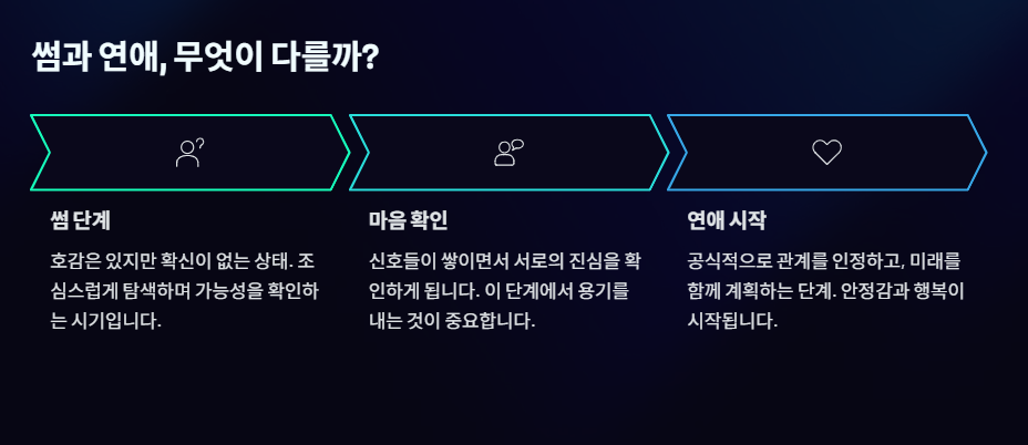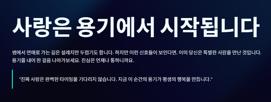 핫플레이스 태그와 휴일 시간을 비워두는 것은 **'다음에도 너와 함께하고 싶다'**는 의지입니다. 썸 단계에서는 '선택'이지만, 연애로 가는 징조는 휴일이 당연히 '우리'의 시간이 되는 과정에서 나타납니다.