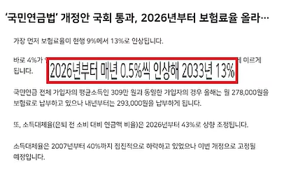 국민연금 보험료 인상도