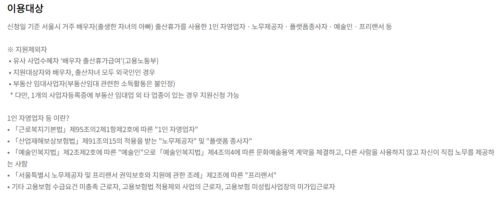 🏙️ 서울시 전용: 1인 자영업자·프리랜서 출산가구지원