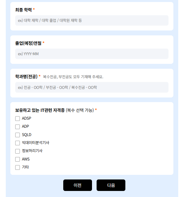 - 교육 수료 후 데이터 엔지니어 분야 취업 의지가 확고한 분