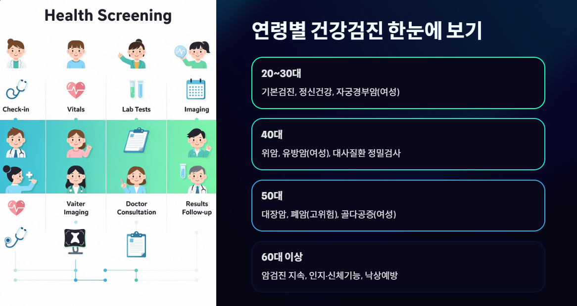 - 여성: 자궁경부암 검진 필수
