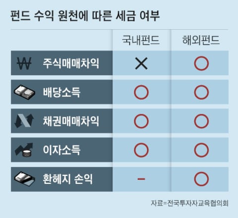 • 비과세 대상: 국내 상장주식 시세차익(소액주주), 펀드 중 국내주식 시세차익 등