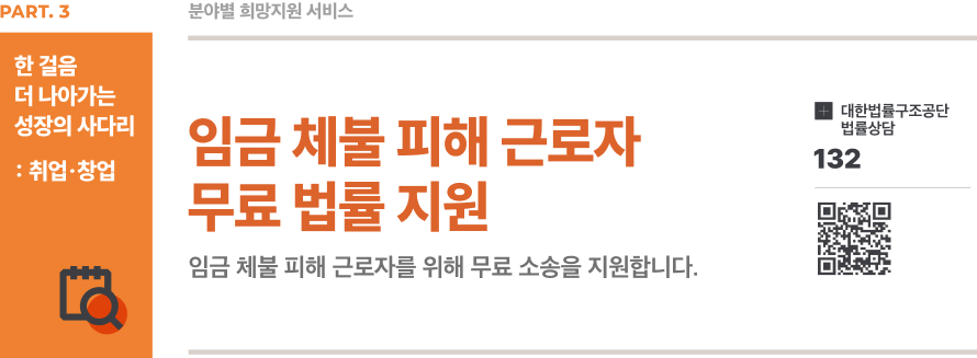 | 법률 상담 | 임금·퇴직금 체불 피해 근로자 | 무료 제공 |