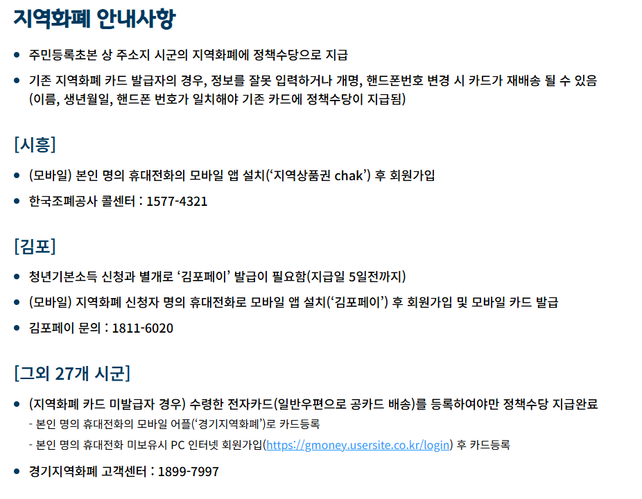 - 본인 명의 지역화폐카드 또는 계좌정보