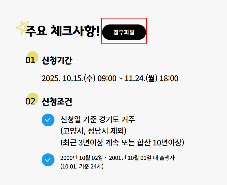 - ✅ 신청 연도 기준 만 24세 (2001년 출생자)
