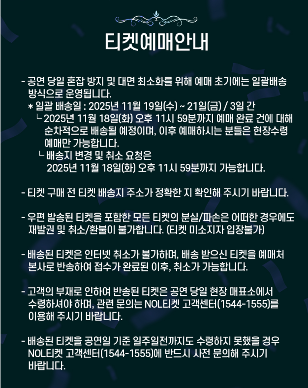 예매 외 타 사이트에서 거래되는 비공식 티켓은 불법 전매로 간주되며, 입장 불가 처리될 수 있습니다.