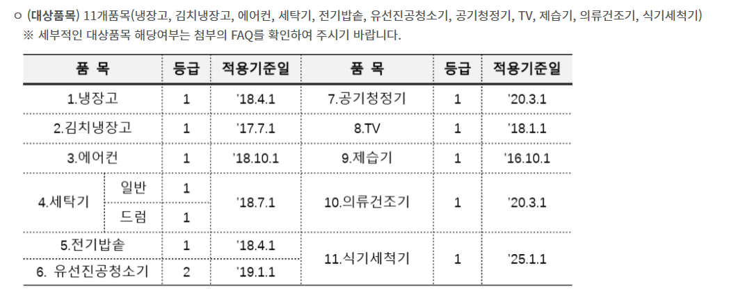 ※ 일부 예외: 유선진공청소기 2~3등급, 벽걸이에어컨 1~3등급 포함.