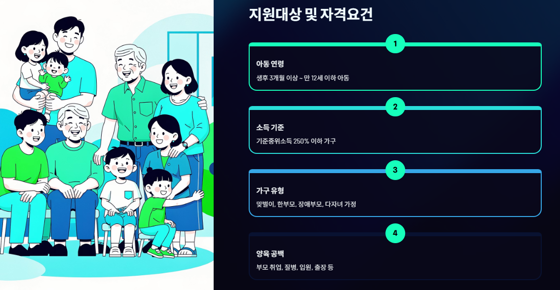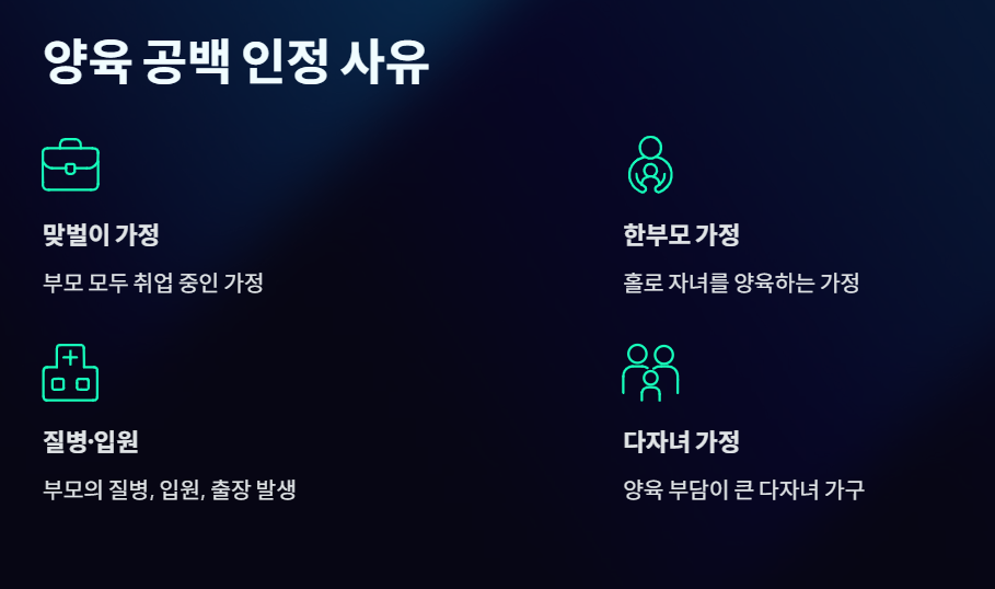 • 부모 맞벌이, 한부모, 장애부모, 다자녀 가정 등