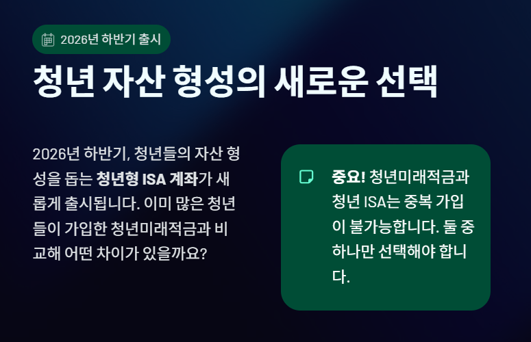 2026년 하반기, 청년들의 자산 형성을 돕기 위한 청년형 ISA 계좌가 새롭게 출시될 예정입니다.