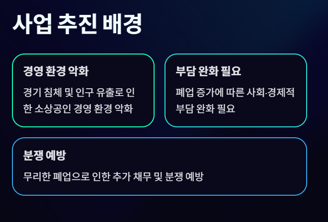 - 경기 침체 및 인구 유출로 인한 소상공인 경영 환경 악화