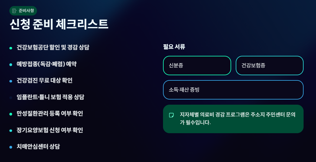 2026년 65세 이상 의료비 지원 신청방법|건강보험료 감면·예방접종·임플란트 혜택