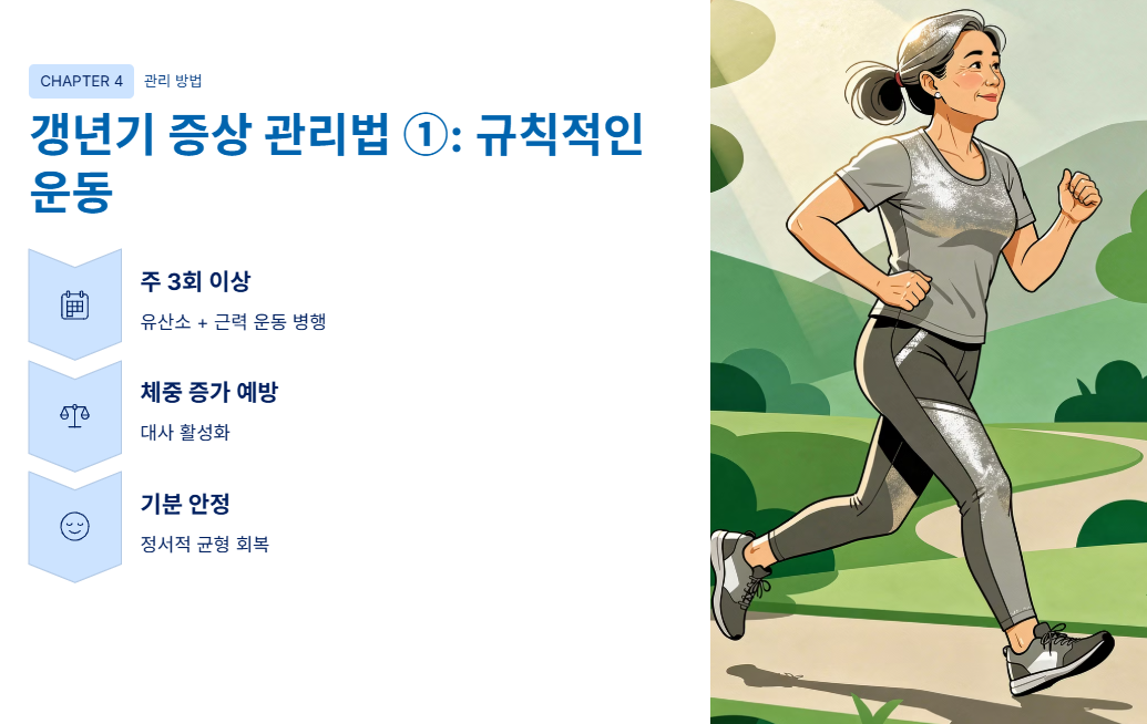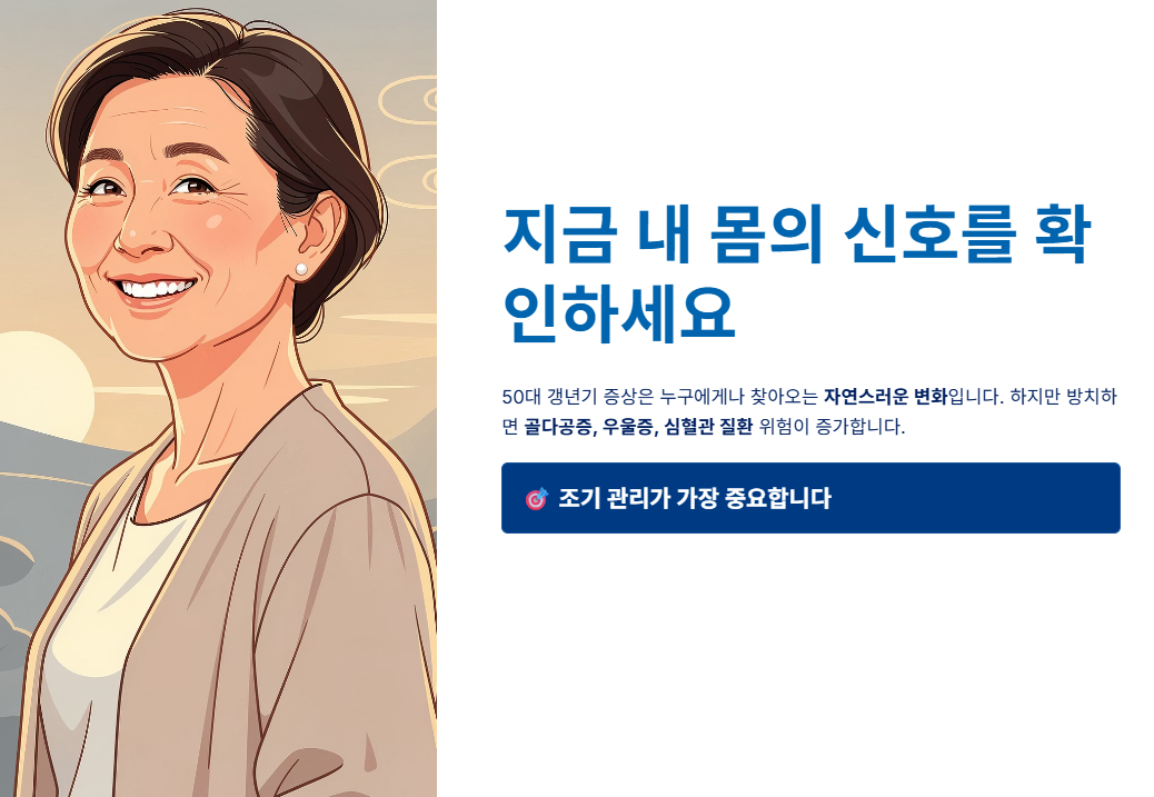 갱년기는 자연스러운 생리적 변화이지만, 제대로 관리하지 않으면 삶의 질이 크게 떨어질 수 있습니다.
