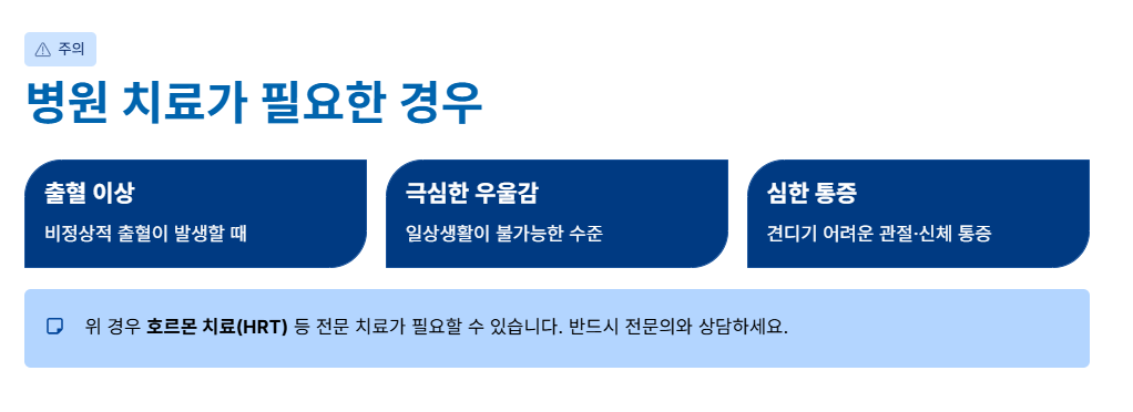 이 경우 호르몬 치료(HRT) 등 전문 치료가 필요할 수 있습니다.