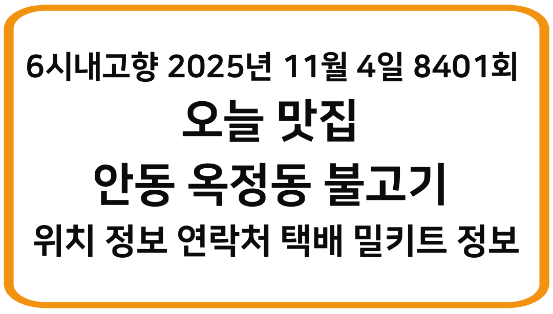 🥩 6시내고향 2025년 11월 4일(화) 8401회 오늘 맛집 — 안동 옥정동 불고기 안동회관