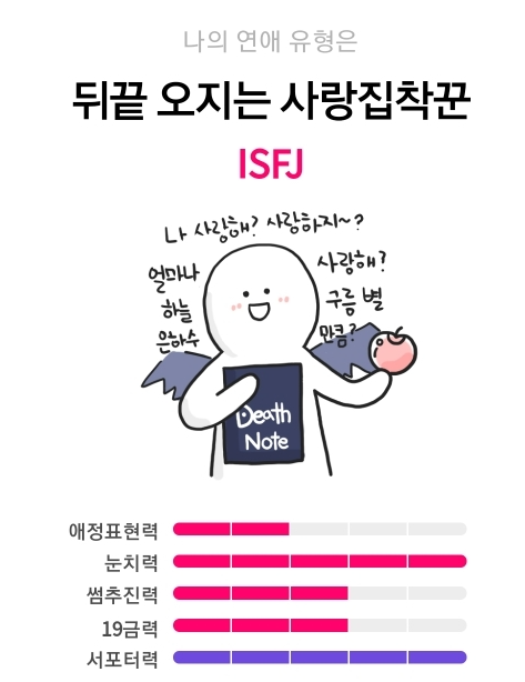 간호, 교육, 행정, 회계 등 체계적인 업무에 적합합니다. - Q. ISFJ 연애 스타일은?