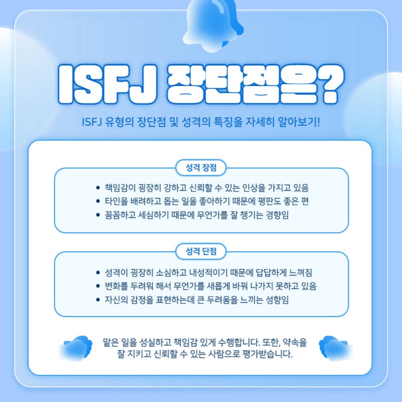 ISFJ특징 MBTI수호자 현실주의자성격 ISFJ장단점 ISFJ연애 ISFJ직업 감정표현 완벽주의 MBTI무료검사 성격유형