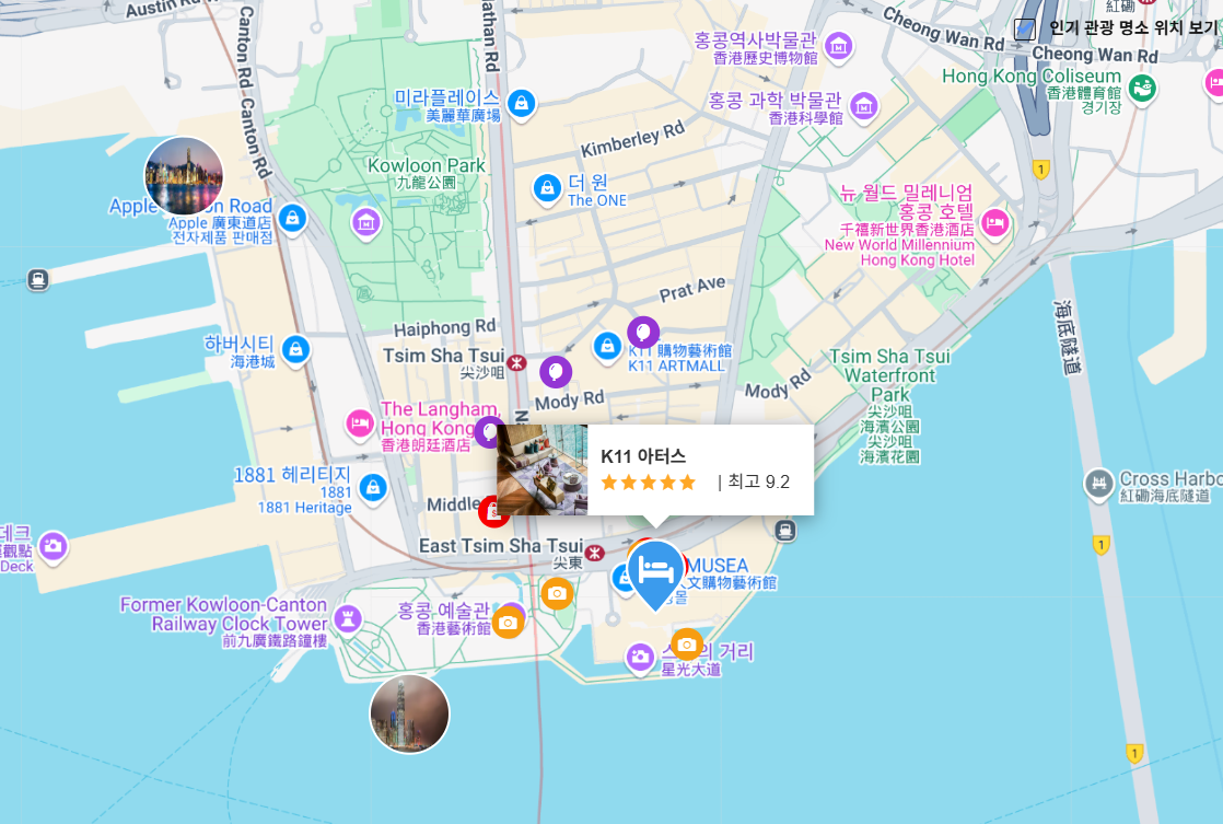 • 빅토리아 하버 옆, 스타의 거리·쇼핑몰과 인접