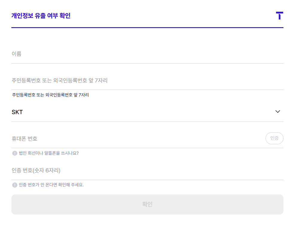 1. SKT 전용 조회 페이지 접속 👉 https://m.tworld.co.kr/v0/infocheck