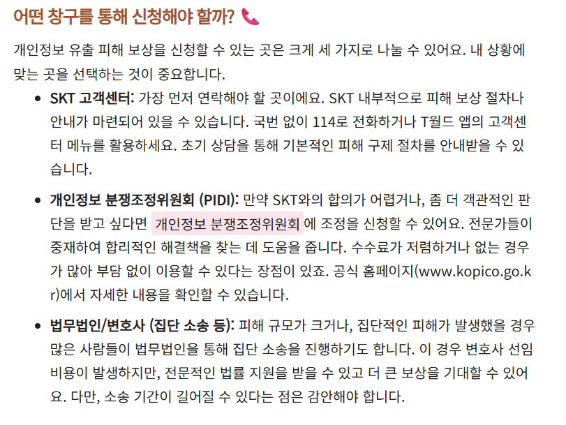 3단계 신청 창구 확인 SKT 고객센터 / 개인정보 분쟁조정위 / 법무법인
