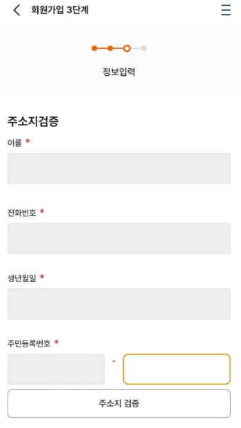 - 회원 가입 시 주민등록상 주소 입력 → 경기도 거주 확인 절차가 진행됩니다.