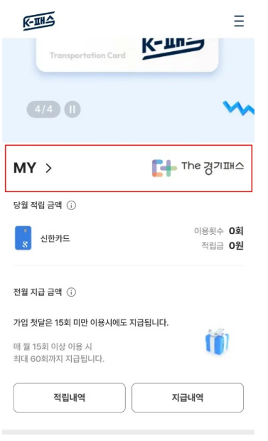 - 월별 이용 실적 기준 충족 시 카드사 또는 K-패스 통합 페이지에서 환급 내역을 확인하세요.