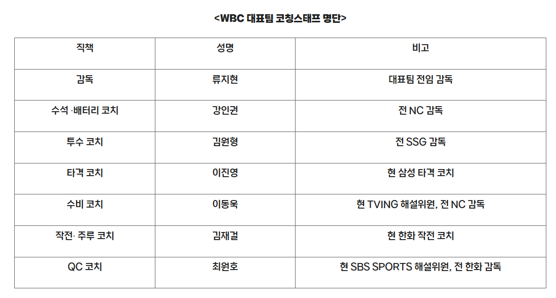 WBC대표팀 코칭스태프 명단